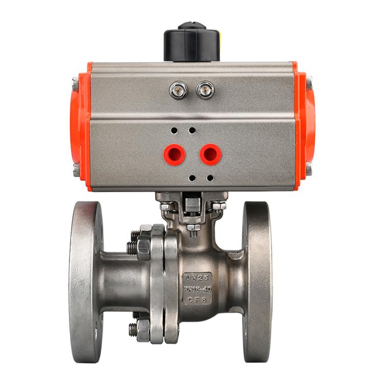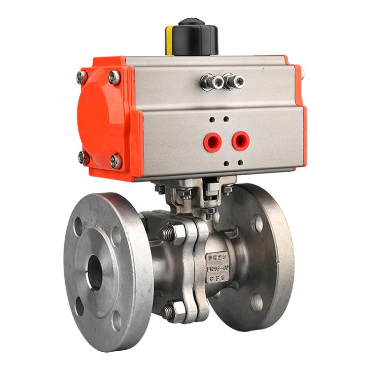 氣動法蘭球閥只需要用氣旋轉90度的操作和很小的轉動力矩就能關閉嚴密。完全平等的閥體內腔為介質提供了阻力很小、直通的流道。通常認為球閥最適宜直接做開閉使用,但近來的發展已將球閥設計成使它具有節流和控制流量之用。球閥的主要特點是本身結構緊湊,易于操作和維修,適用于水、溶劑、酸和天然氣等一般工作介質,而且還適用于工作條件惡劣的介質,如氧氣、過氧化氫、甲烷和乙烯等。球閥閥體可以是整體的,也可以是組合式的。